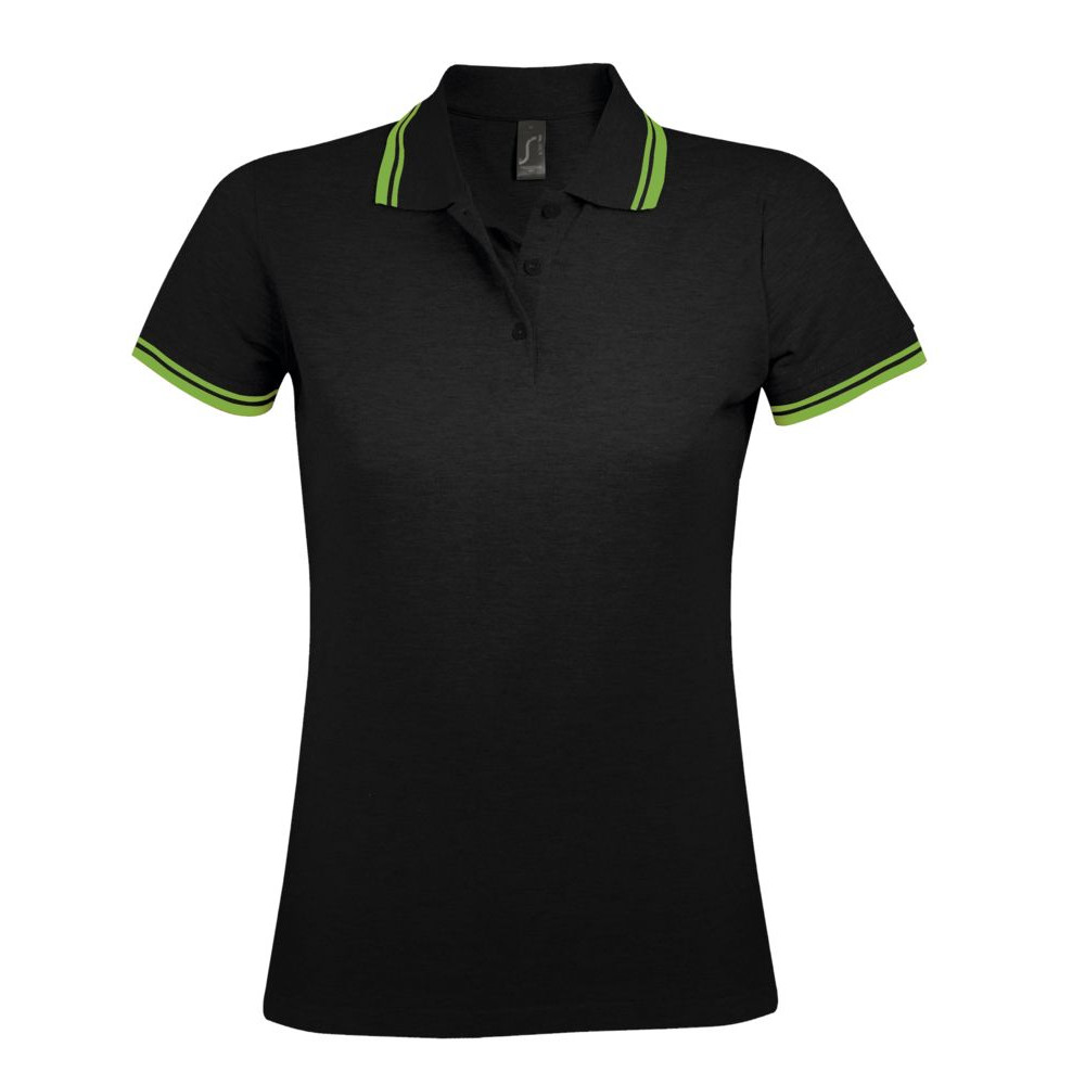 Рубашка поло женская Pasadena Women 200 с контрастной отделкой, черная с белым