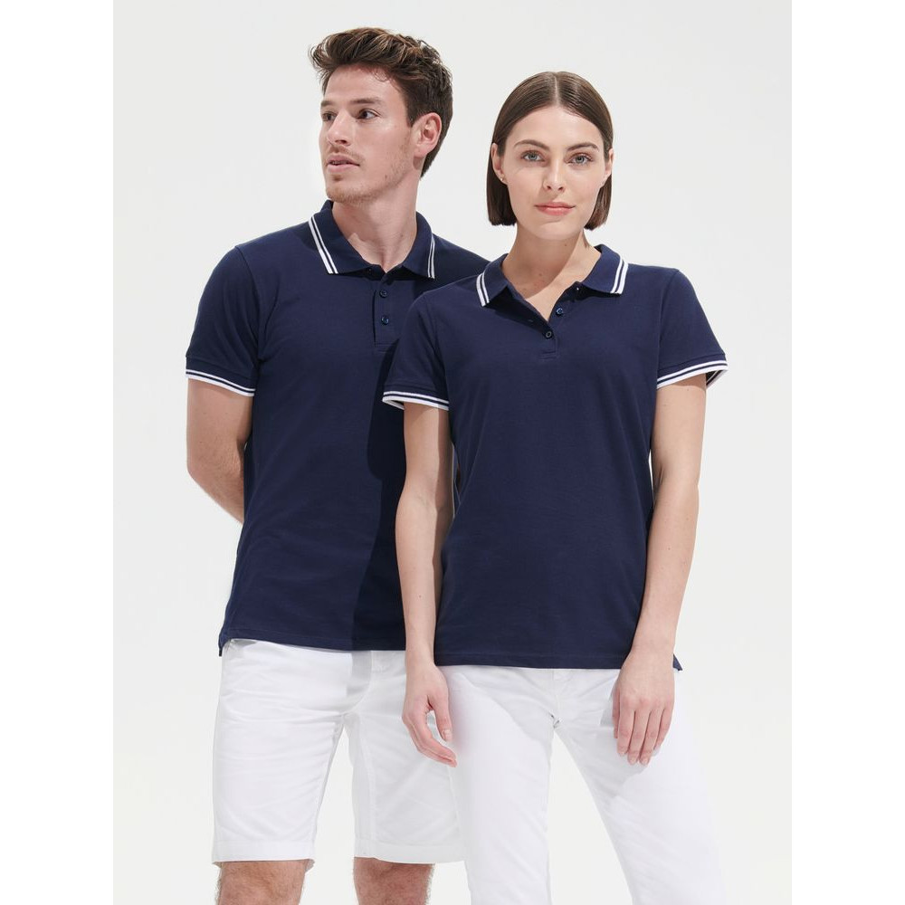 Рубашка поло женская Pasadena Women 200 с контрастной отделкой, темно-синяя с белым