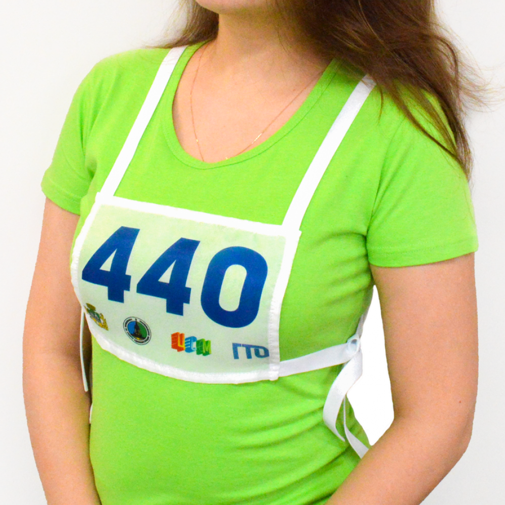 Стартовый номер (грудь+спина) прямоугольный, на завязках