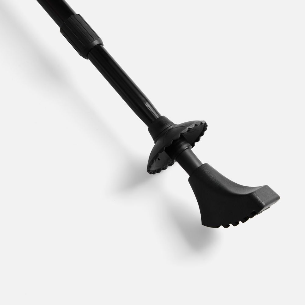 • Заостренный наконечник из стали с комплектом насадок для ходьбы по асфальту («сапожок»), песку, снегу, мягкому грунту («кольцо») или пересеченной местности («упор»)