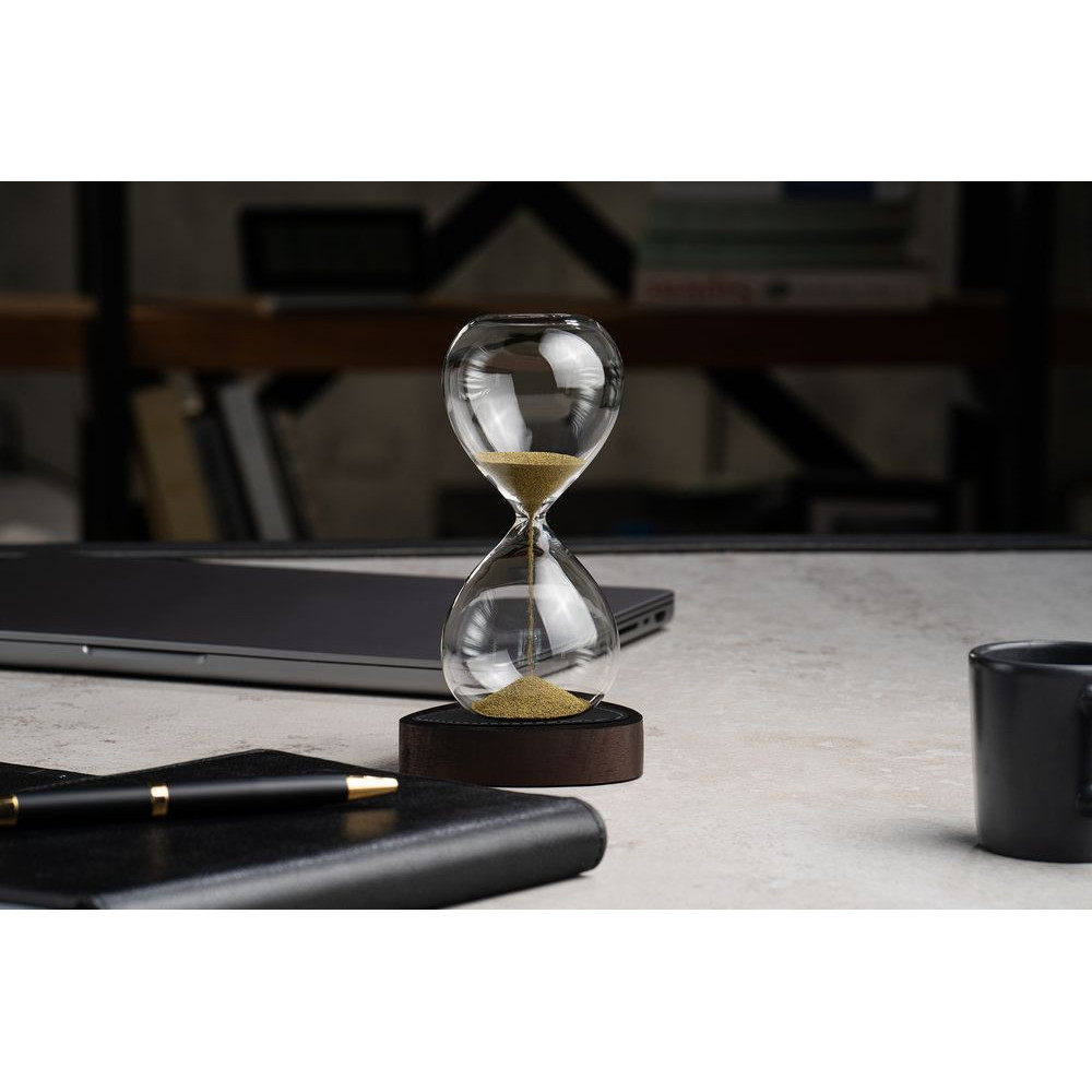 Этот статусный настольный аксессуар позволит на пару минут отвлечься от суеты и привести мысли в порядок.В набор входит колба с магнитным песком золотистого цвета на +/- 60 секунд и деревянная подставка из бука со вставкой из натуральной кожи.