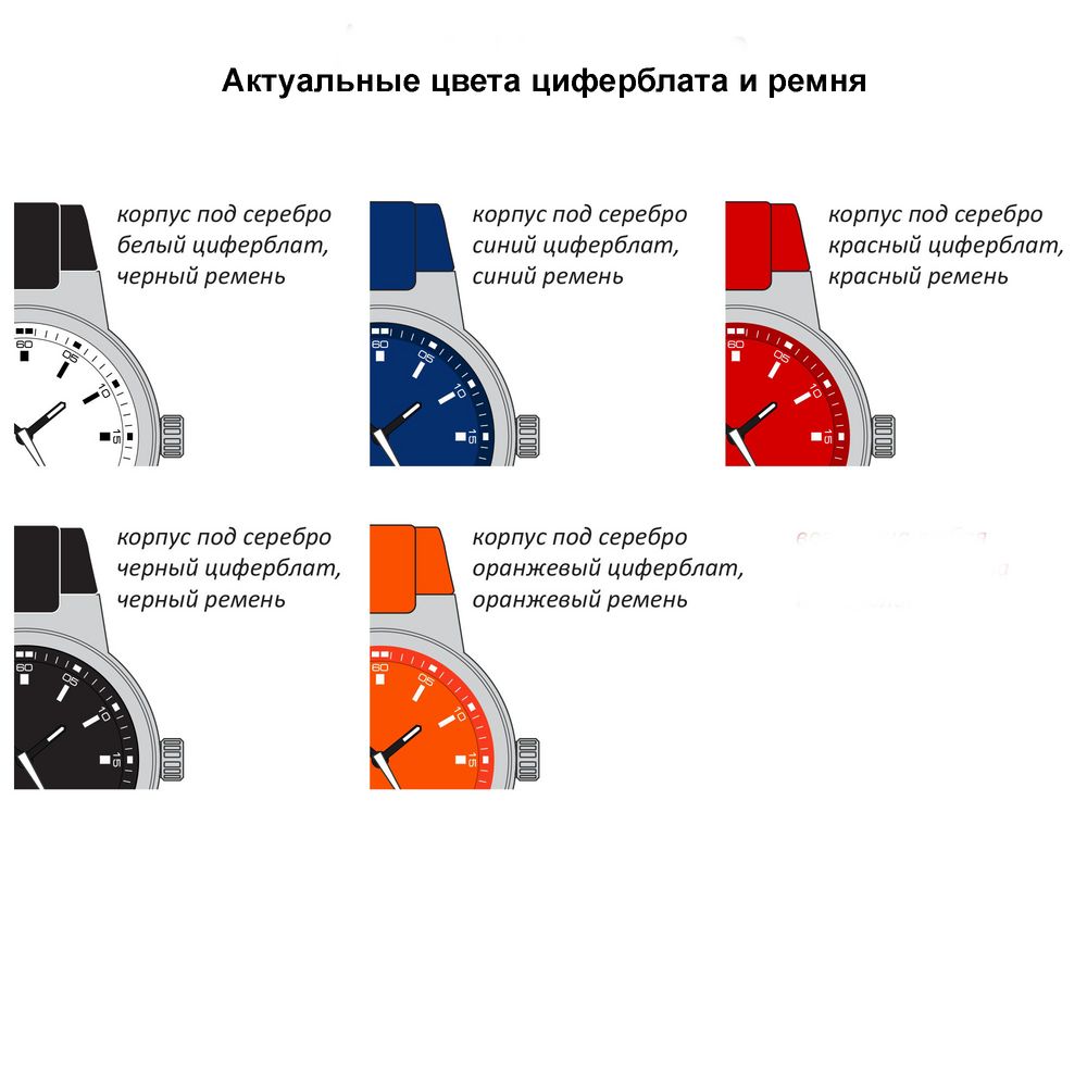 • Цвет циферблата (черный/белый/синий/красный/оранжевый).