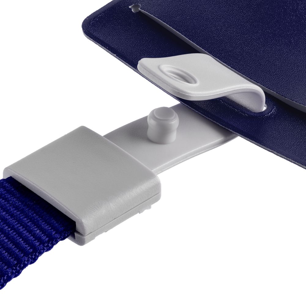 Карман для пропуска крепится к ленте с помощью пластиковой клипсы.