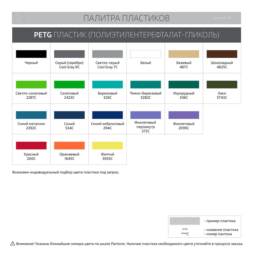 - Цвет и тип пластика. Варианты цветов можно посмотреть в разделе «Фотографии».