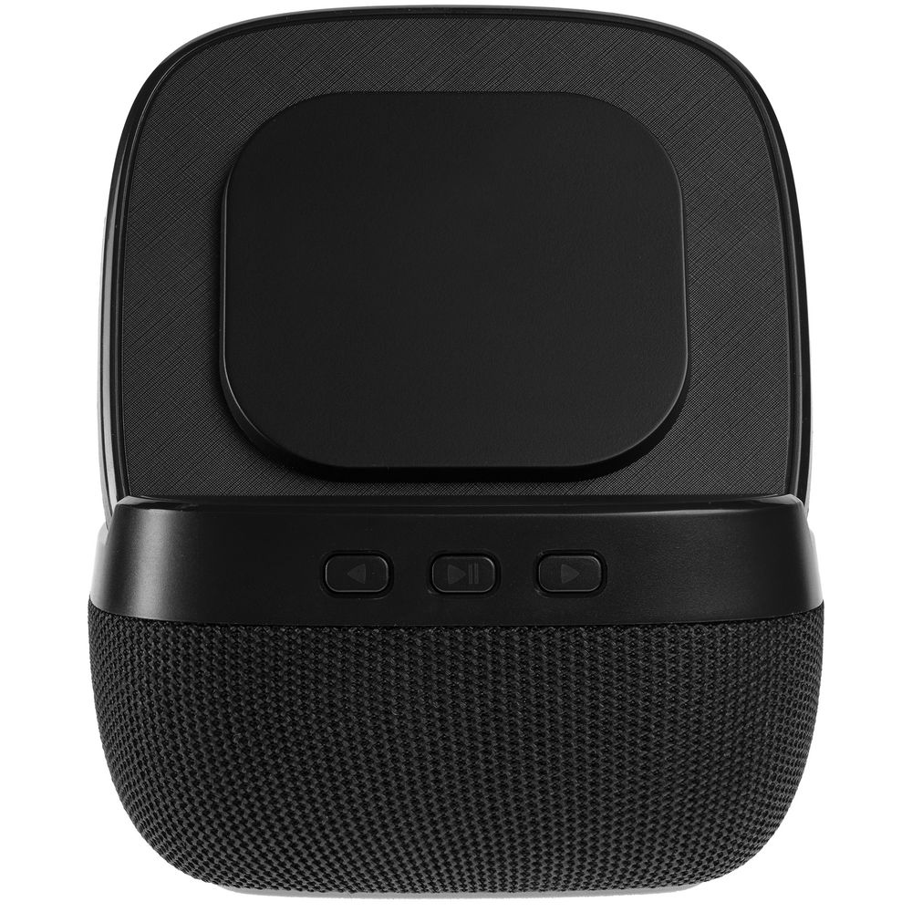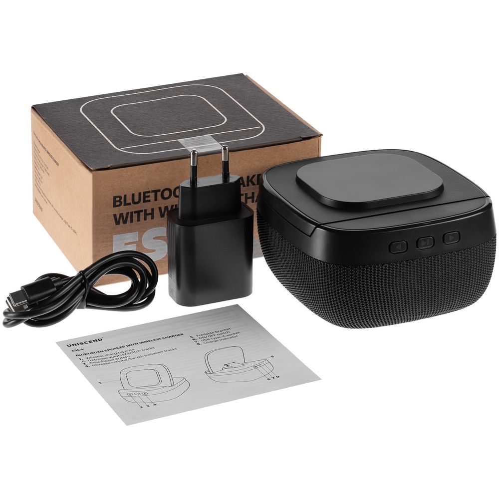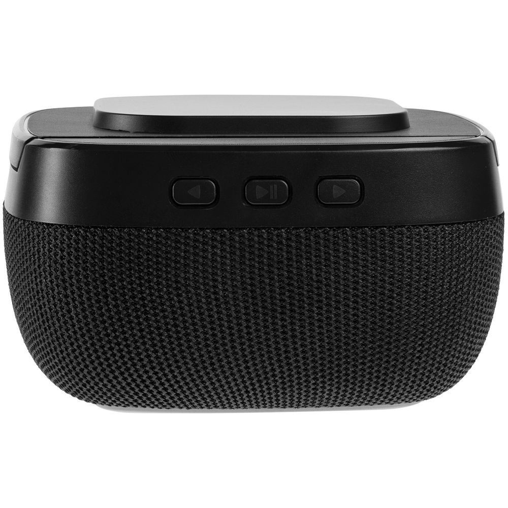 Колонка с беспроводной зарядкой Esca и подсветкой логотипа, черная 3399 ₽