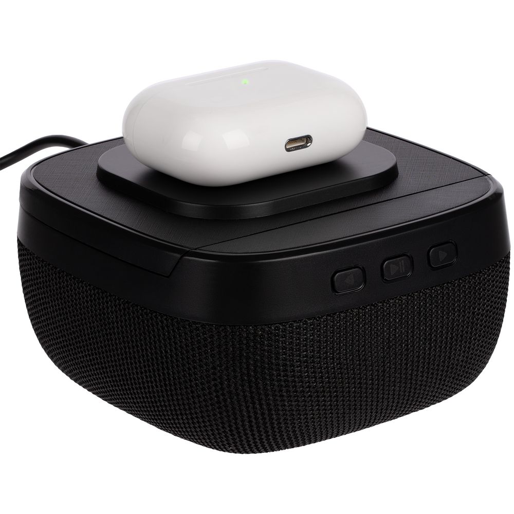 • Колонка с беспроводной зарядкой Esca и подсветкой логотипа, черная