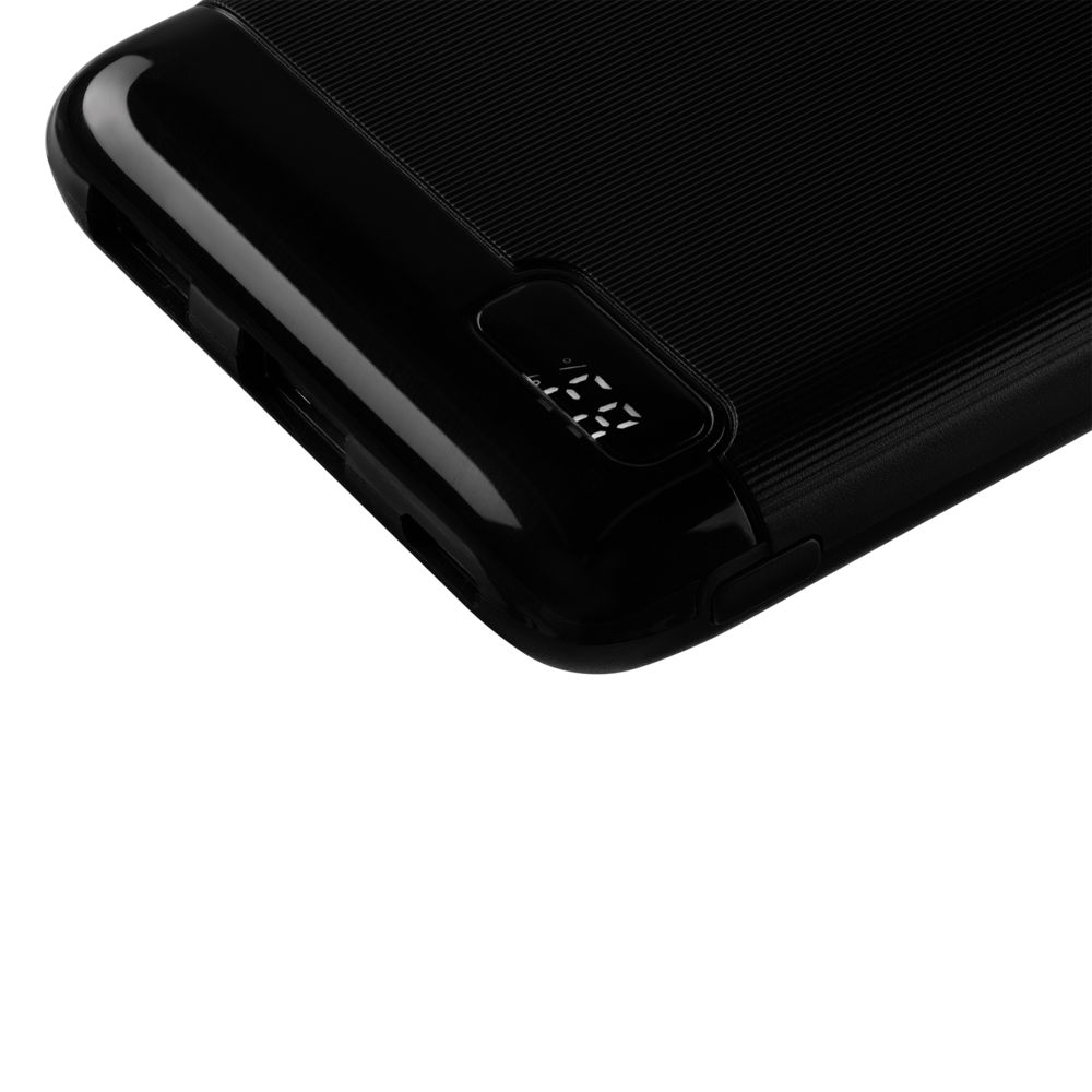 Компактный аккумулятор со входными разъемами Type-C и Micro USB, а также удобным индикатором заряда в процентах.