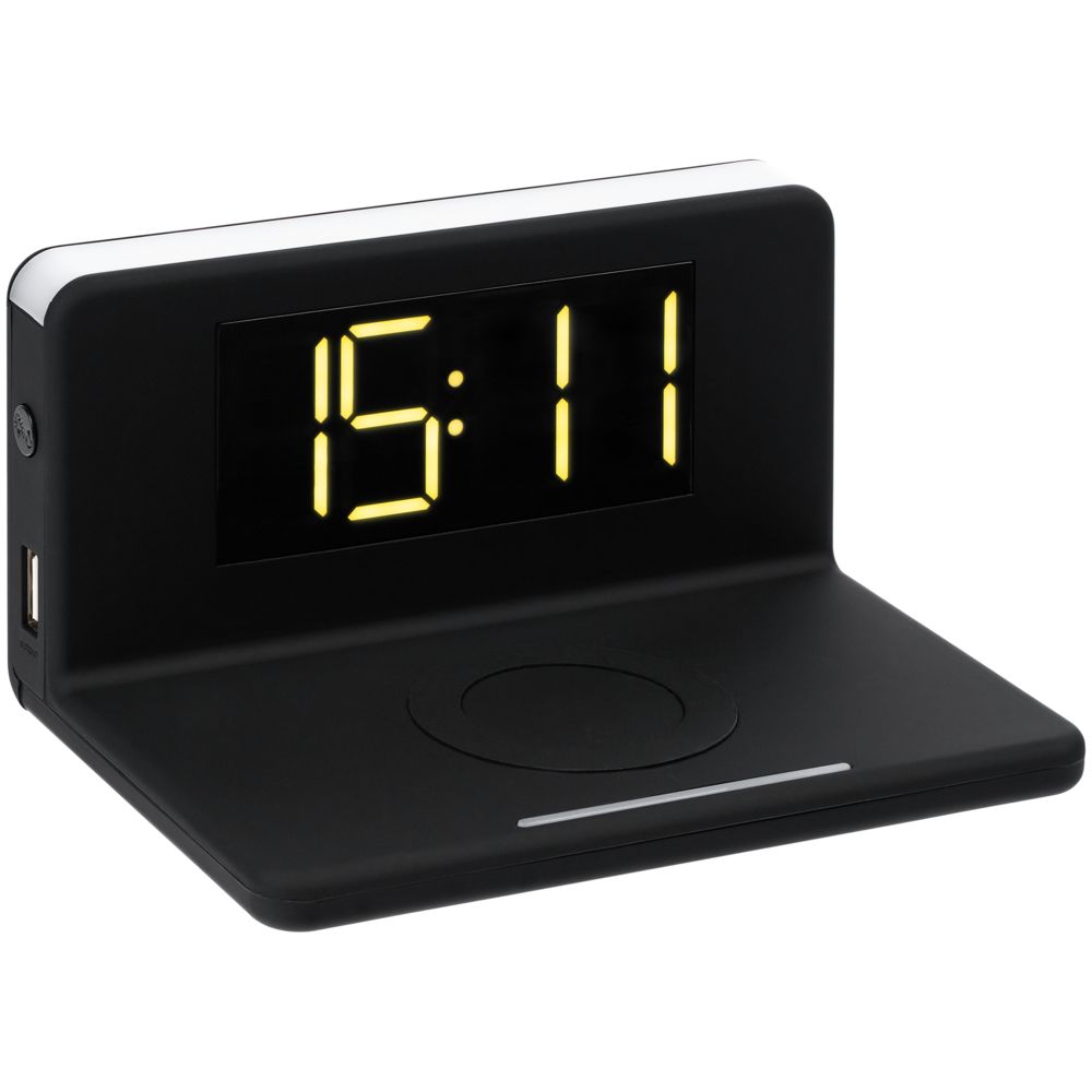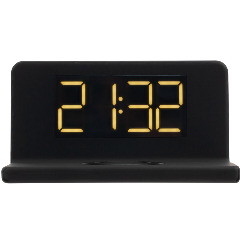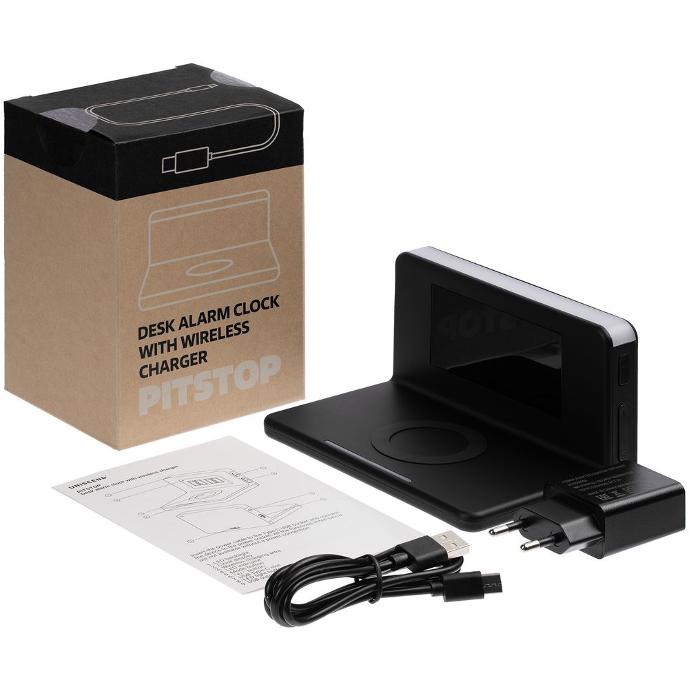 • Часы настольные с беспроводным зарядным устройством Pitstop, черные