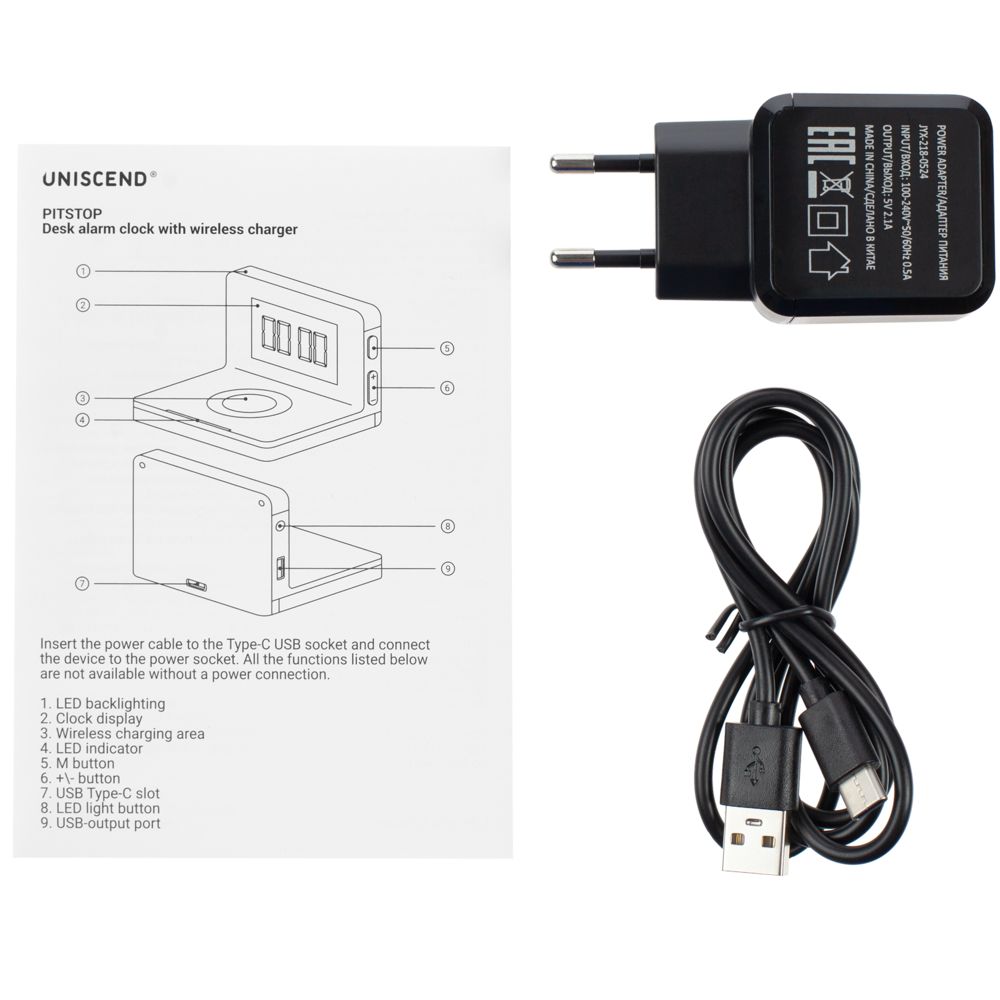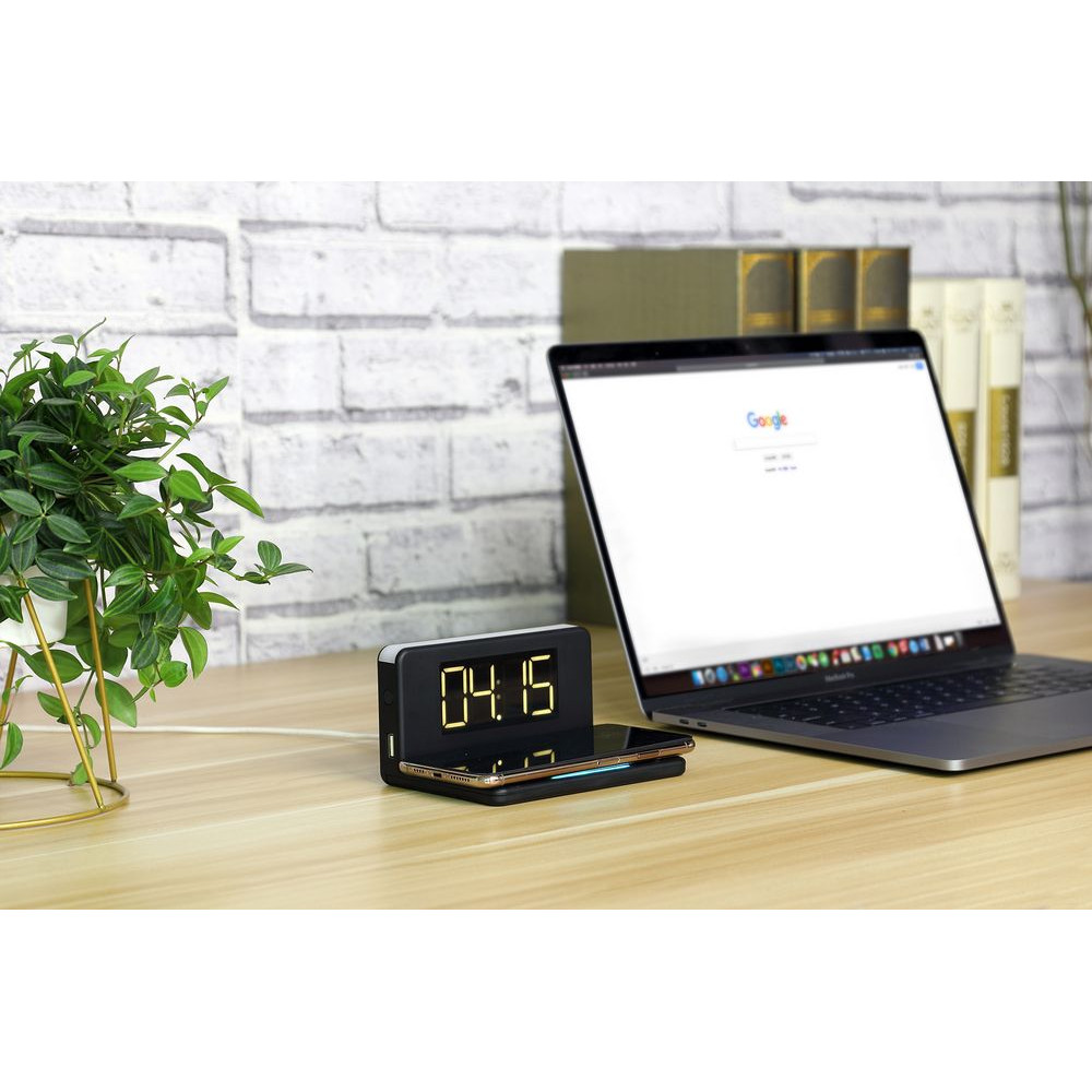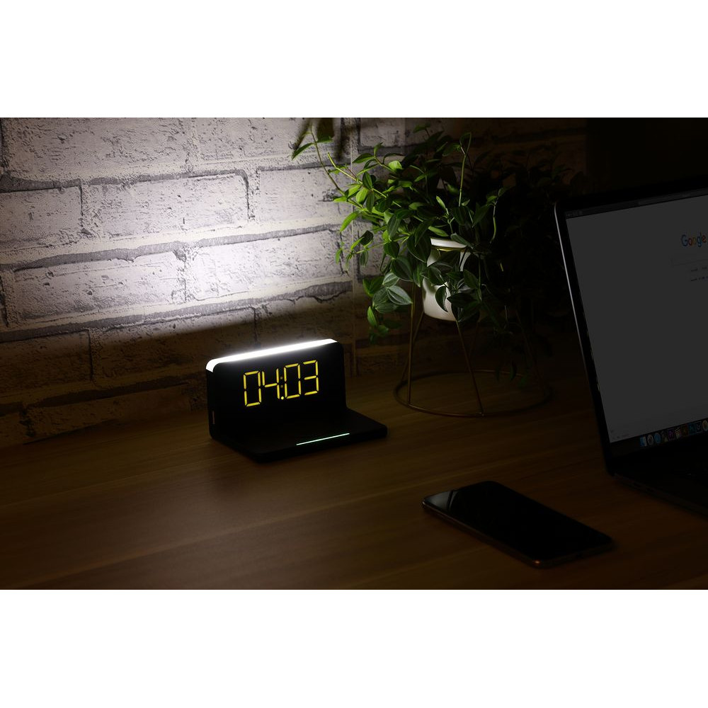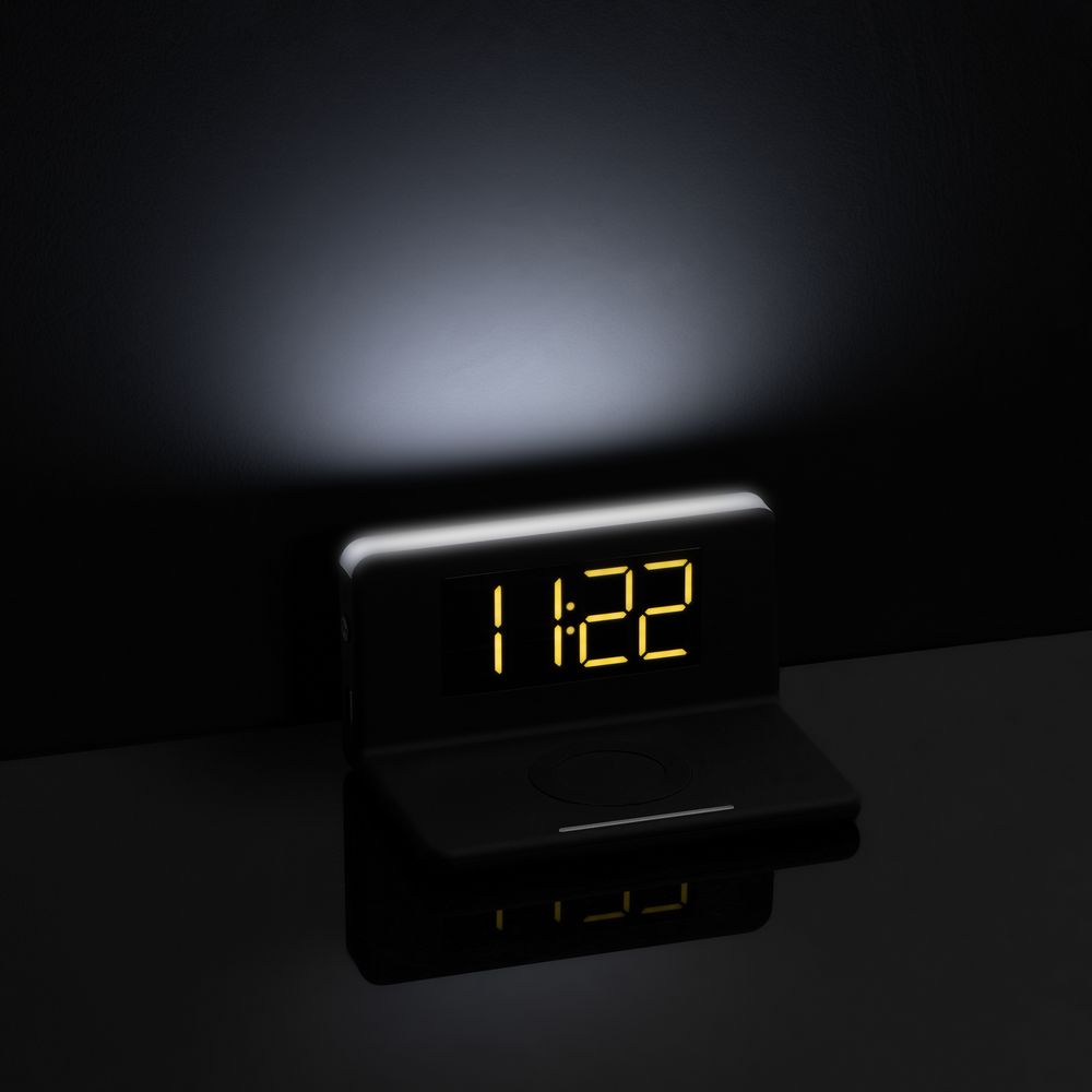 • Часы настольные с беспроводным зарядным устройством Pitstop, черные