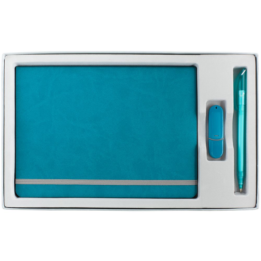 Подарочная упаковка для ежедневника 2,5х15х21 см, ручки 1,5х14,2 см и флешки 2х6,7 см.