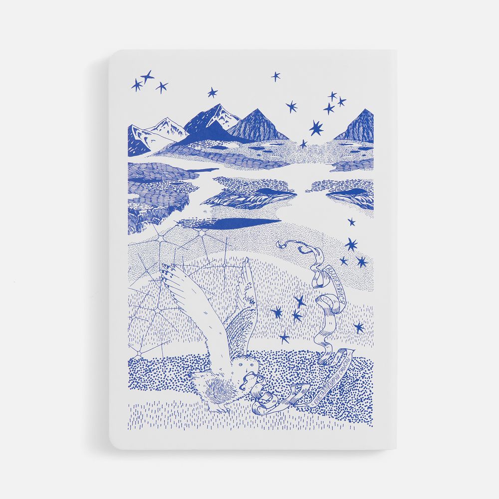 Подарочная упаковка и блокнот украшены чарующим детализированным изображением с совами на фоне бескрайнего горного пейзажа. Мудрые птицы несут на лентах важные послания с заветами на будущий год, а тончайшие линии выверенного рисунка создают неповторимое полотно северной сказки. Оттеняют магию Севера белоснежные шапка и шарф, которые подарят ощущение чистого зимнего утра и непередаваемого комфорта.