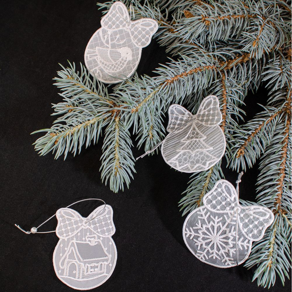 Нежные, как первый снег, и полупрозрачные, как морозное дыхание, — украшения из шифона подарят ощущение настоящего новогоднего чуда. Филигранная вышивка поражает своей почти невесомой легкостью, а серебристые нити и белоснежная бусинка элегантно дополняют весь ансамбль — каждая деталь этих подвесок передает радость и волшебство зимы.