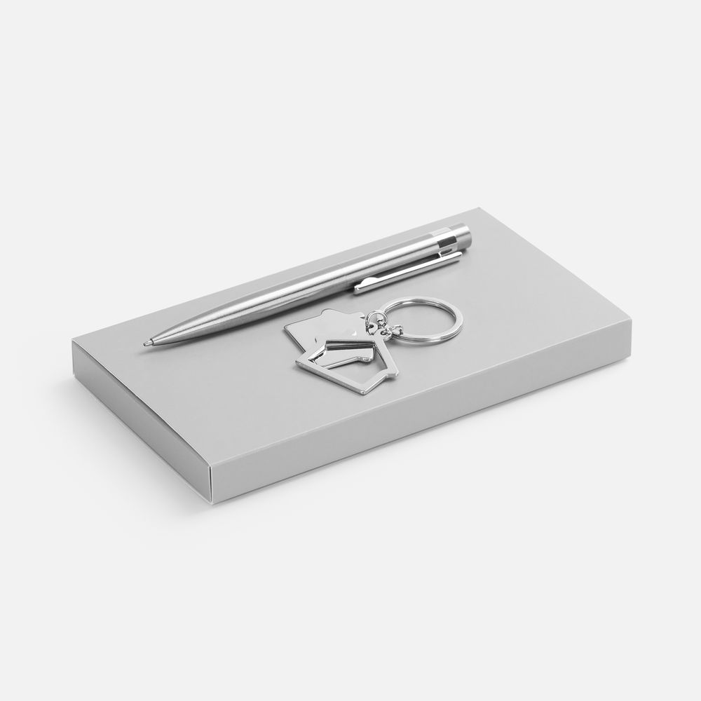 Шариковая ручка в матовом корпусе из переработанной стали не только подчеркивает заботу об экологии, но и дарит уверенность в каждом слове. Металлический брелок с подвесками в форме домика — идеальный промосувенир для строительных компаний, агентств недвижимости и ремонтных сервисов.