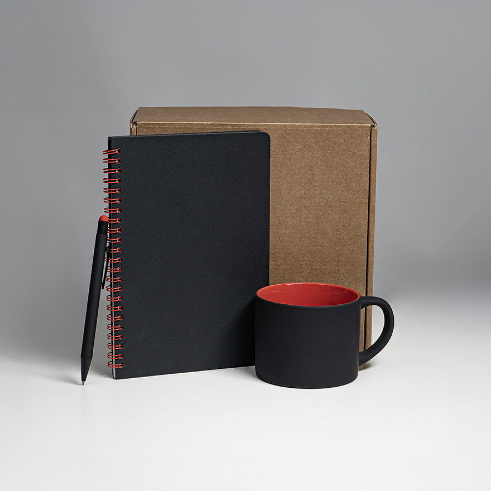 Набор подарочный FLAME: блокнот, ручка, кружка; черный/красный