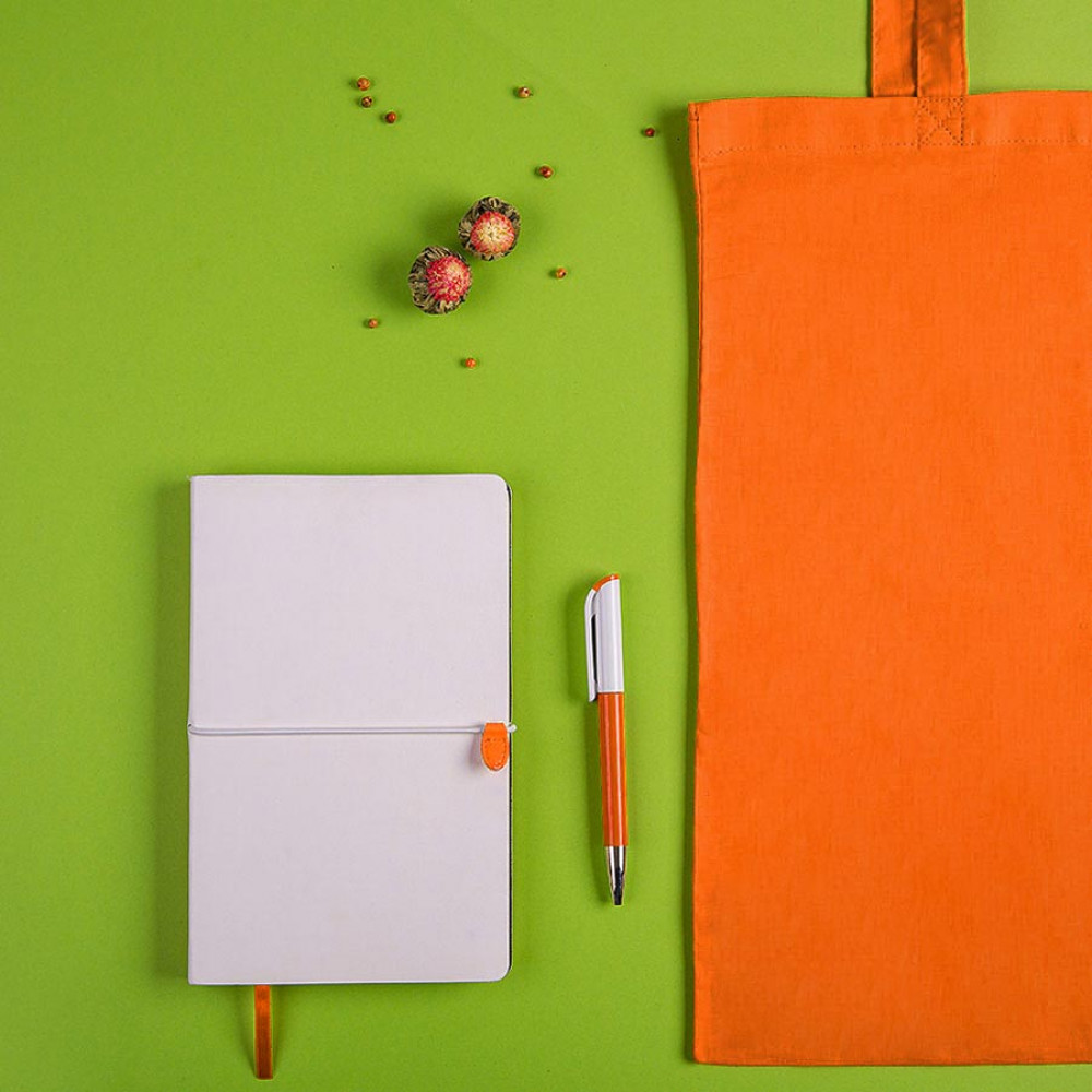 Параметры: Набор подарочный WHITEYOU: бизнес-блокнот, ручка, сумка, бело-оранжевый