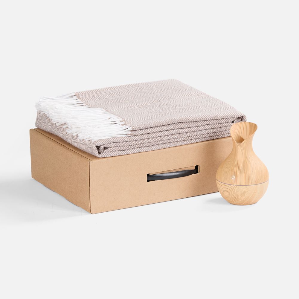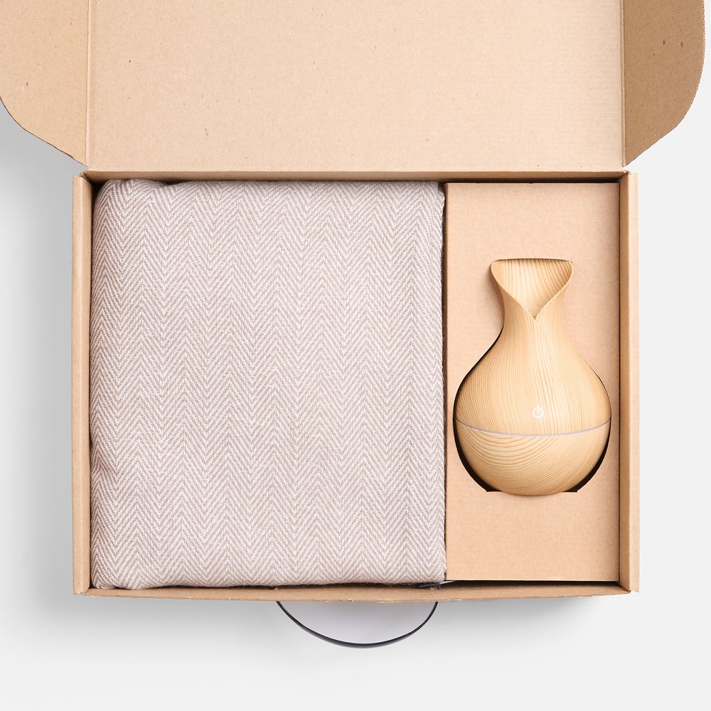 Мягкий плед нежных оттенков подарит тепло и комфорт, а изящный увлажнитель наполнит воздух свежестью и приятным ароматом. Этот набор — гармония красоты и функциональности, где каждый момент посвящен ценному отдыху и расслаблению.