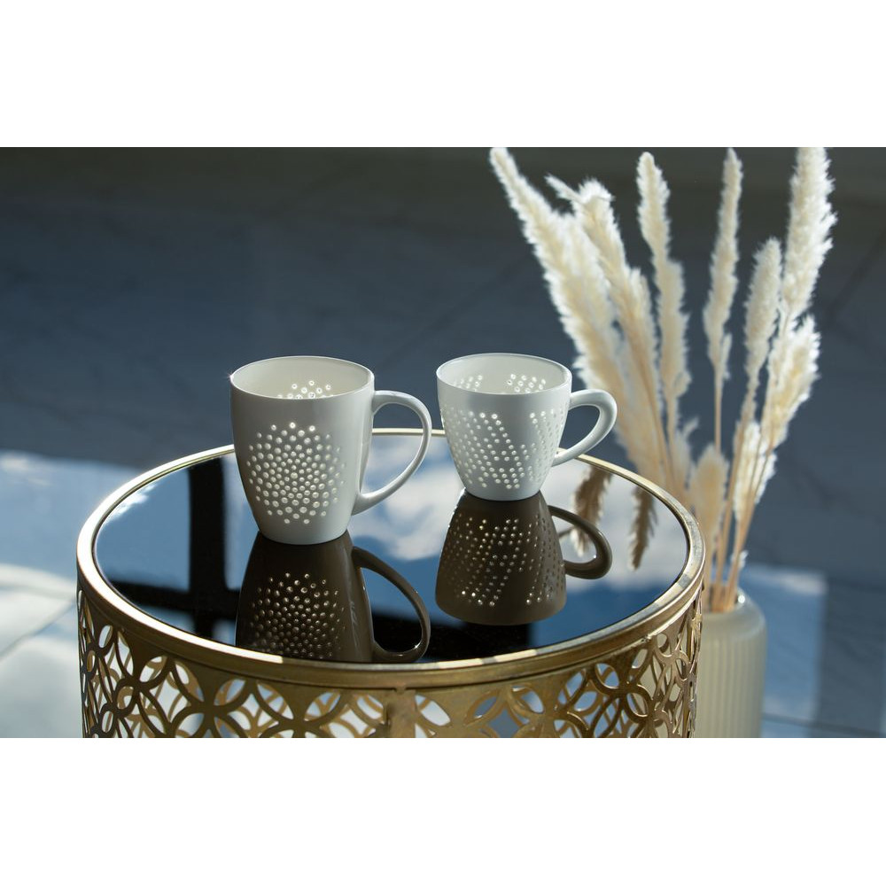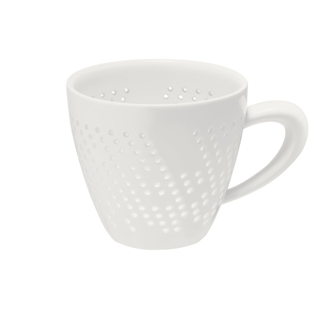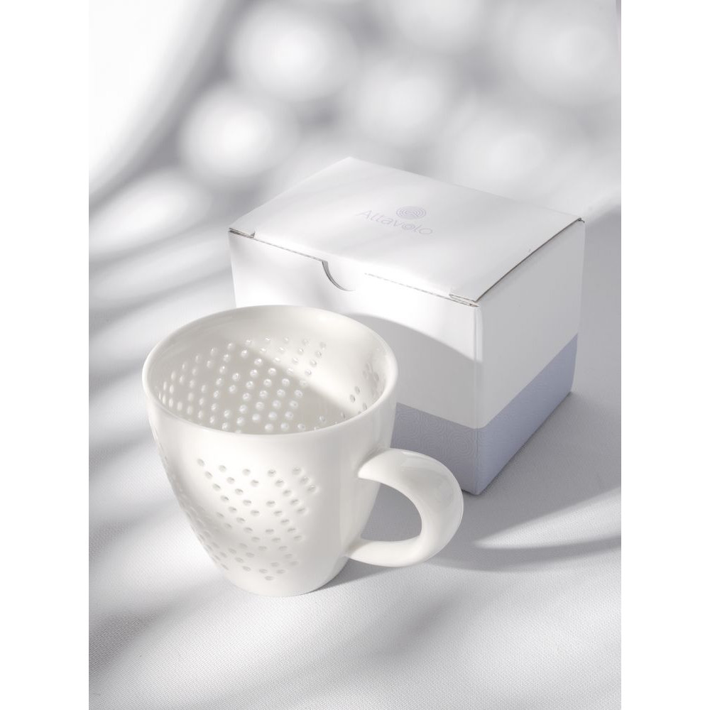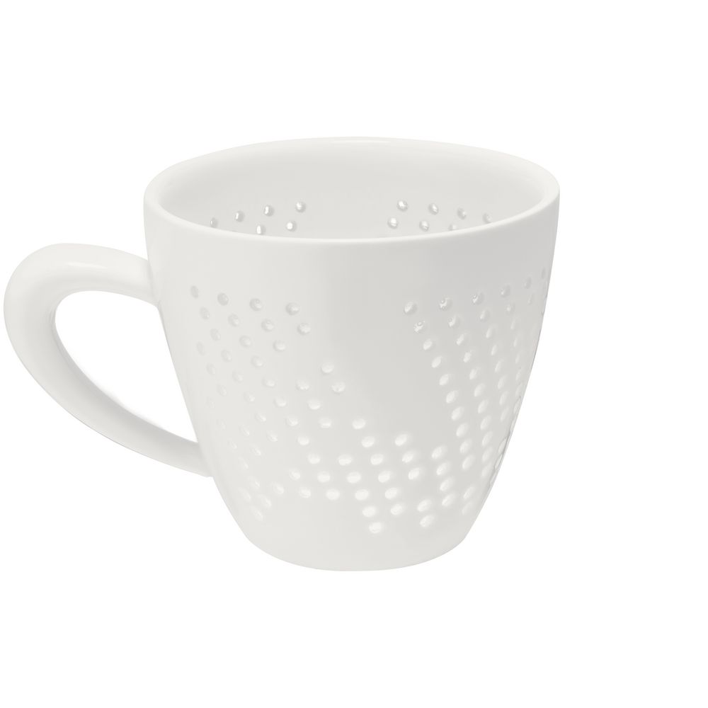 Чашка Coralli Rio — легкая, словно светящаяся изнутри посуда с легендарным узором «рисовое зерно». Благодаря тонкому слою прозрачной глазури кружка выглядит кружевной и ажурной, при этом напиток гарантированно остается внутри.