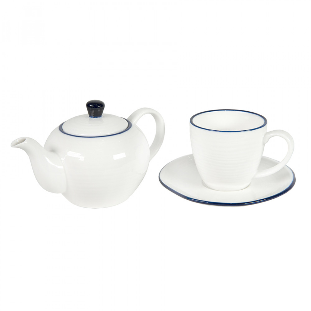 Чайная пара и чайник SEAWAVE выполнены в классическом нежном дизайне. Элегантное сочетание белой посуды с синим кантом всеми давно любимо. Волнообразное покрытие чашки, похожее на рябь на поверхности воды, и подарило название этому комплекту – «морская волна».
