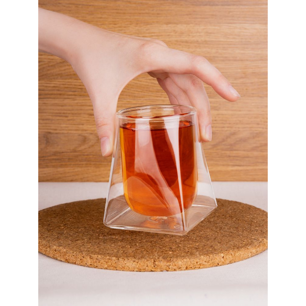 Стакан Quadroni подходит для подачи как горячих, так и холодных напитков. Благодаря двойным стенкам из тонкого боросиликатного стекла стакан практически ничего не весит, отлично сохраняет тепло и не обжигает руки.