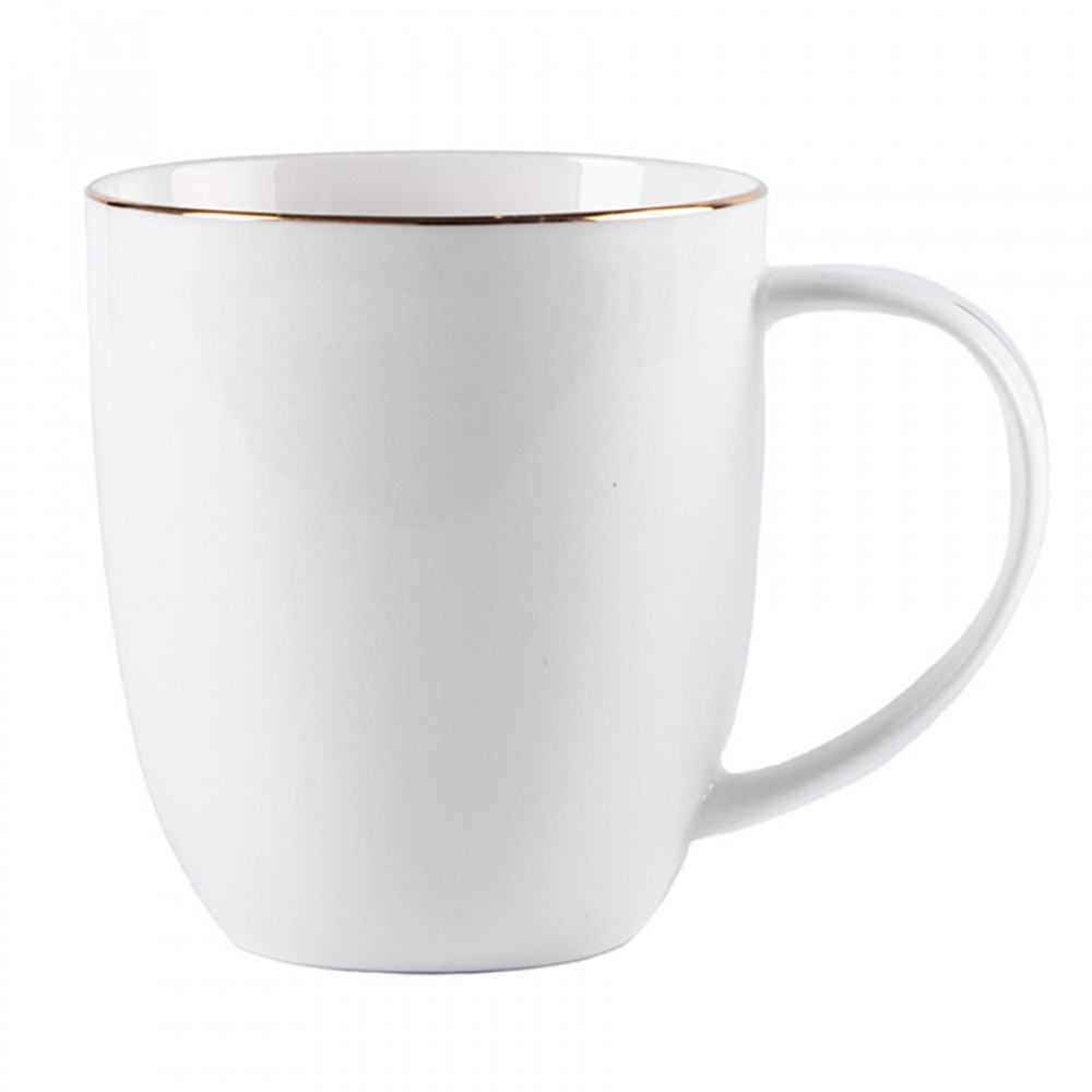 Эстетичная модель кружки из костяного фарфора воплощает взгляд на посуду в духе императорского величия. Посуда из этого материала имеет в своем составе обожженную костяную муку. Такая кружка на порядок легче обычной, ее стенки гораздо тоньше, но при этом сохранена прочность и долговечность. Даже через десятки лет они не утратят яркости, прочный материал не подвергнется разрушению. Классическая форма и объем в 400 мл. делают ее отличным сувениром. Элегантный образ дополняется золотым кантом по краю.