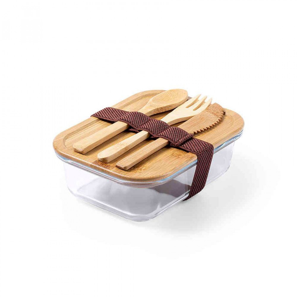 Параметры: Ланч-бокс BEJAR, ложка, вилка нож в комплекте, 17,2х6,7х12,7см, 700 мл, стекло, бамбук