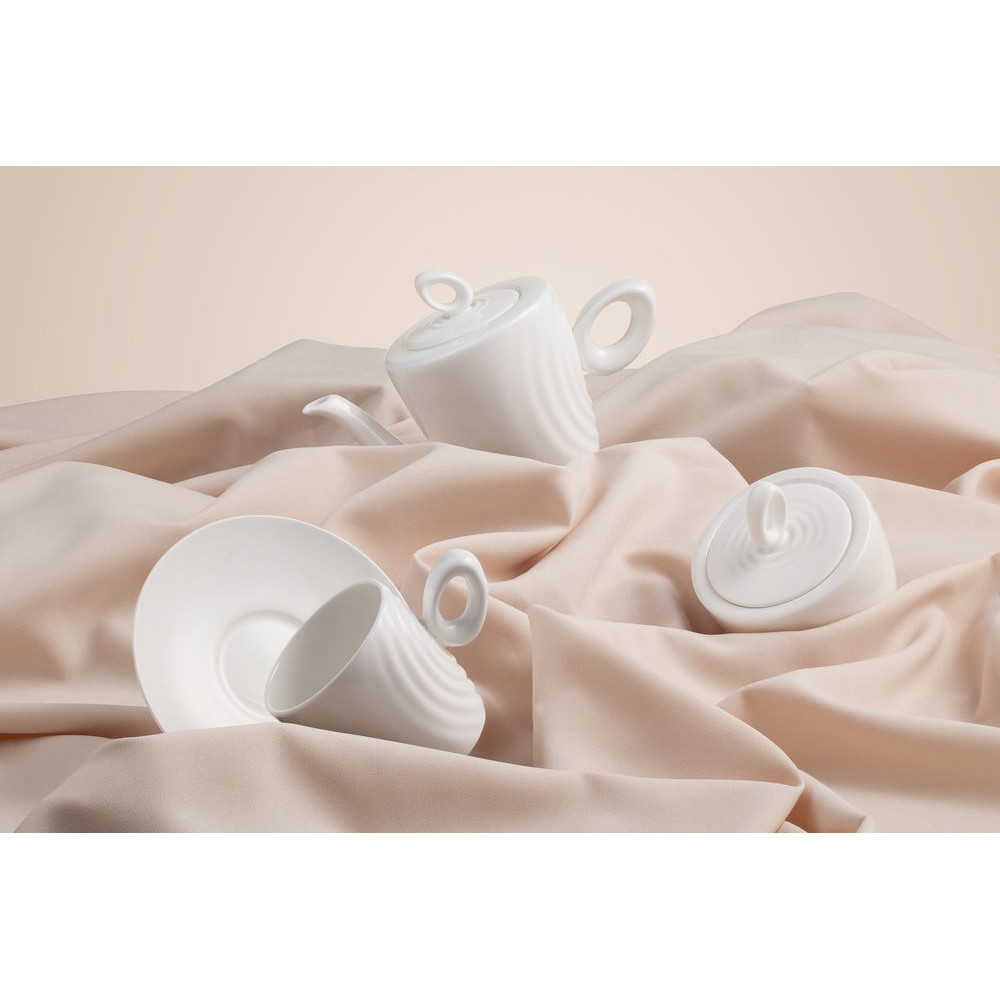 Сахарница выполнена из костяного фарфора, что делает ее необычайно легкой и прочной одновременно.При этом благодаря биоморфическим формам кажется, что твердый материал становится мягким и податливым.