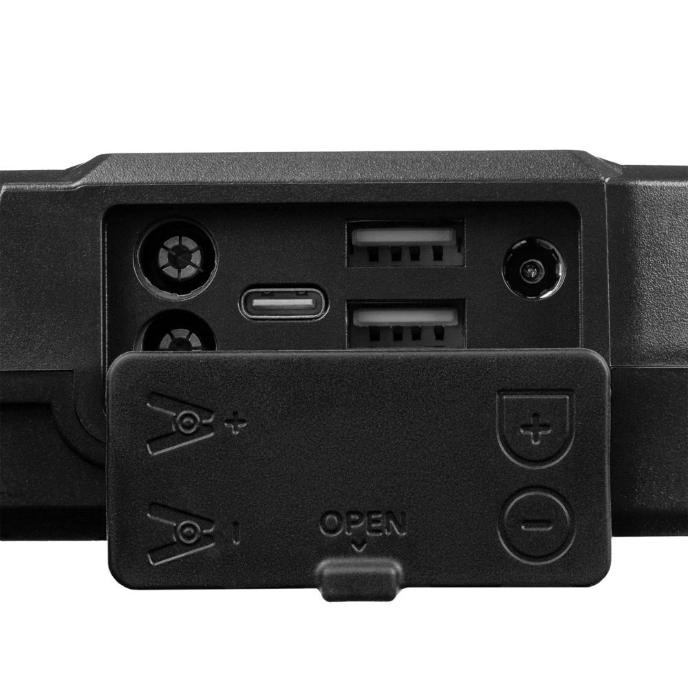 Разъемы USB и Type-C на корпусе поддерживают быструю зарядку периферийных устройств с поддержкой протокола быстрой зарядки Quick Charge. Встроенный фонарь имеет 3 режима работы: обычный, стробоскоп и SOS — и точно выручит во время работы в темноте.