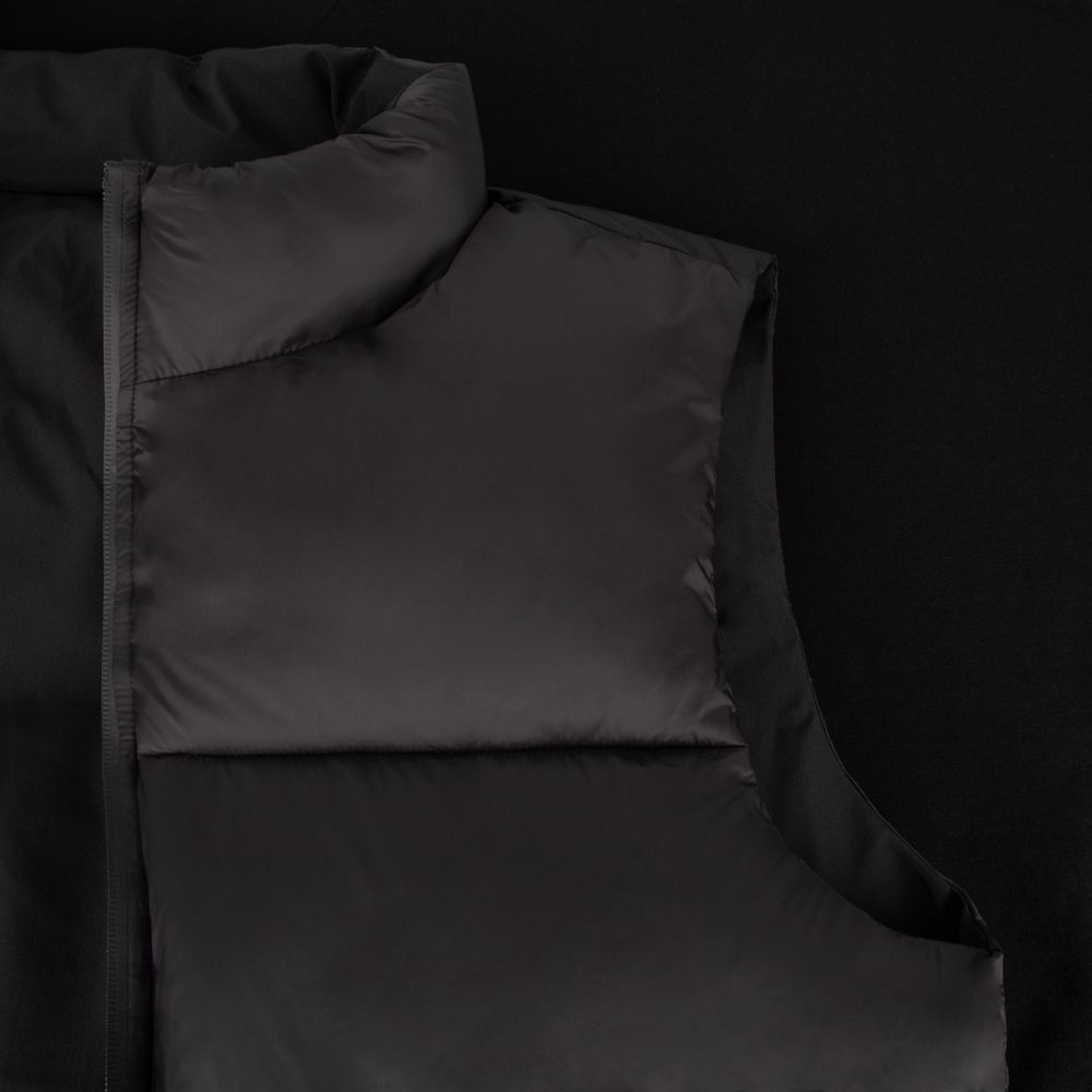 Двусторонний утепленный жилет V2 — это сразу два стильных образа в одном изделии. С одной стороны он стеганый и глянцевый, а с другой — матовый, лаконичный и уже без прострочки. Объемная и легкая модель оверсайз позволяет создать непринужденный и комфортный образ и в городе, и в путешествии.