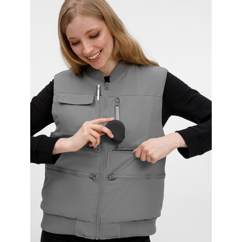 • 8 функциональных карманов, из них на передней части: 1 карман с клапаном для документов/рации, 1 карман для ручки, 5 вместительных на молнии, а так же 1 карман под планшет на молнии на спинке жилета