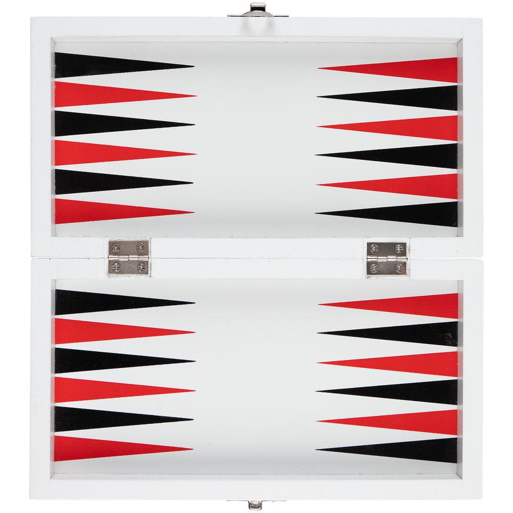 На внутренней стороне доски расположено поле для игры в нарды, на внешней — для шахмат и шашек. Компактная складная доска позволяет хранить все фигуры внутри, что делает данный набор идеальным компаньоном как для домашних вечеров, так и для путешествий.Упаковано в индивидуальную коробку.