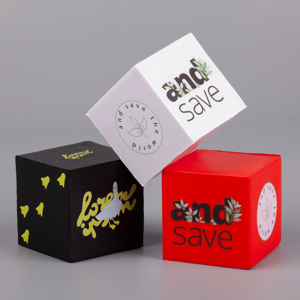 Приятный на ощупь кубик-антистресс. Удачное решение, когда на одном предмете нужно разместить несколько логотипов, например, спонсоров мероприятия.