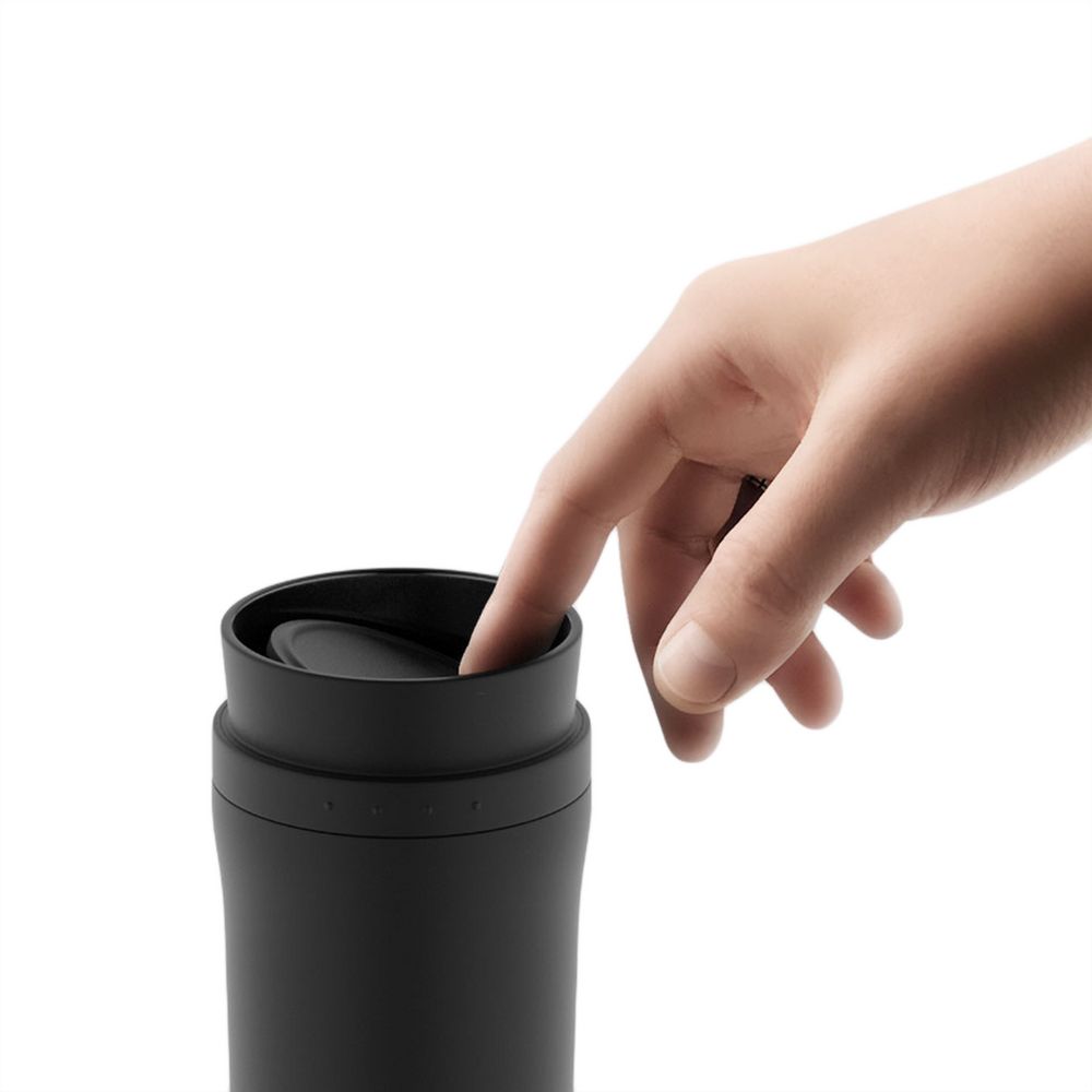 • Герметичная завинчивающаяся крышка с силиконовым уплотнителем и питьевой системой с клапаном — технология 360° позволяет одним нажатием открывать кружку и пить с любой стороны