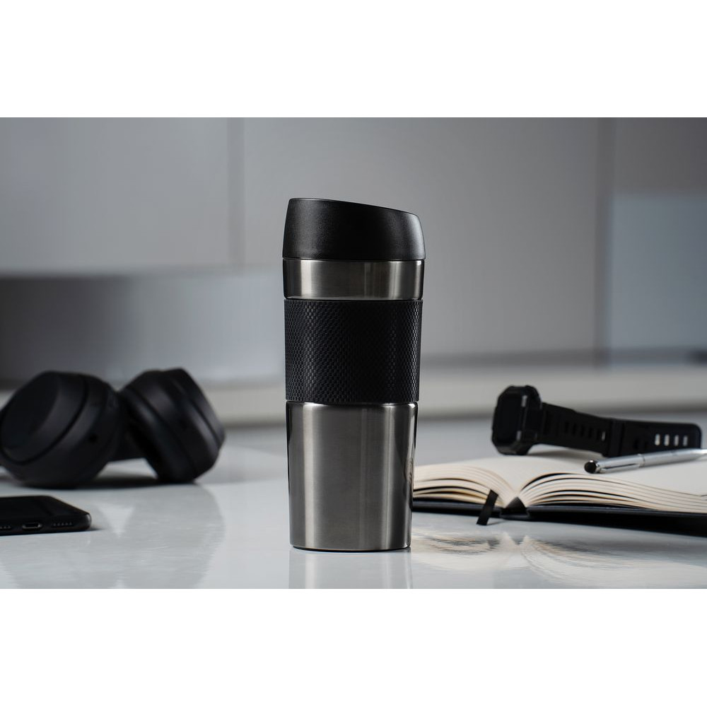 Двухслойная вакуумная конструкция из нержавеющей стали внутри и снаружи. Герметичная завинчивающаяся крышка с нажимным клапаном для питья.