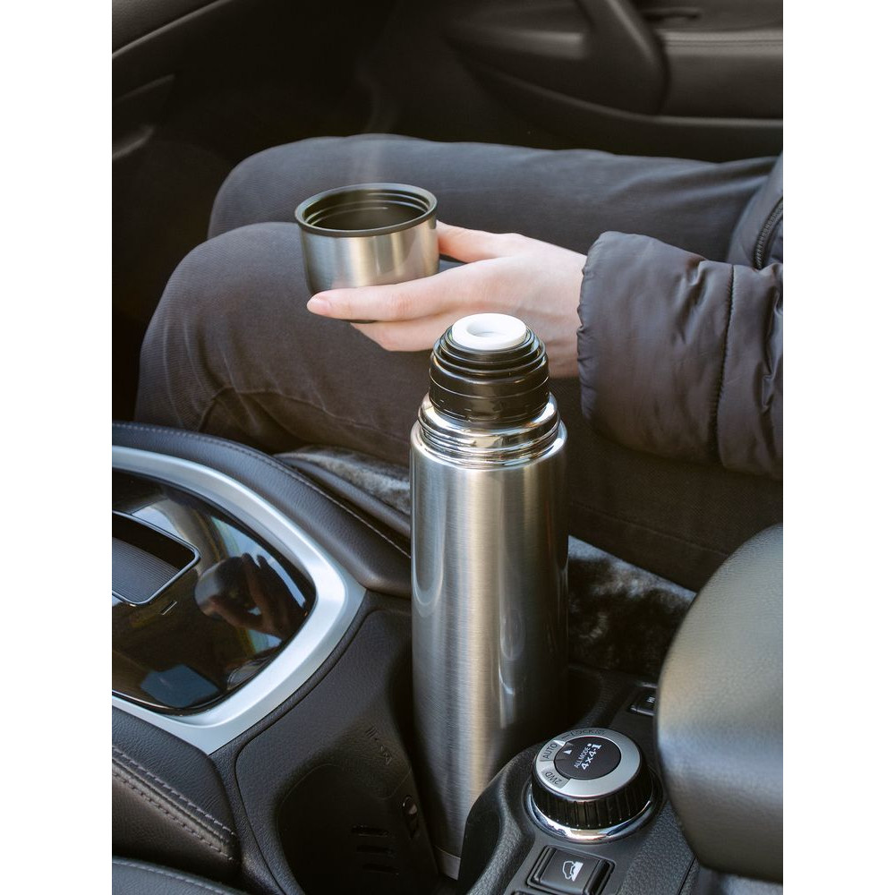 Двухслойная вакуумная конструкция из нержавеющей стали с завинчивающейся пробкой с клапаном.