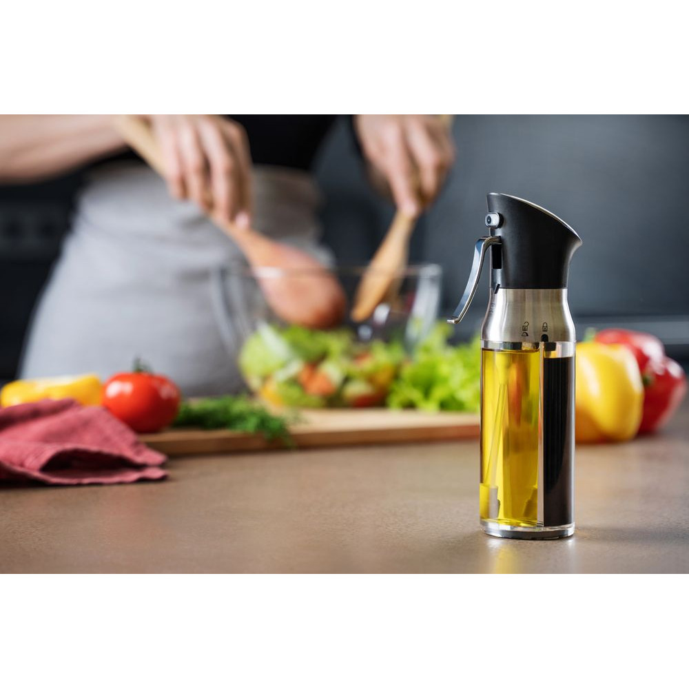 Спрей-дозатор позволяет контролировать количество используемого масла и уксуса при приготовлении блюд.