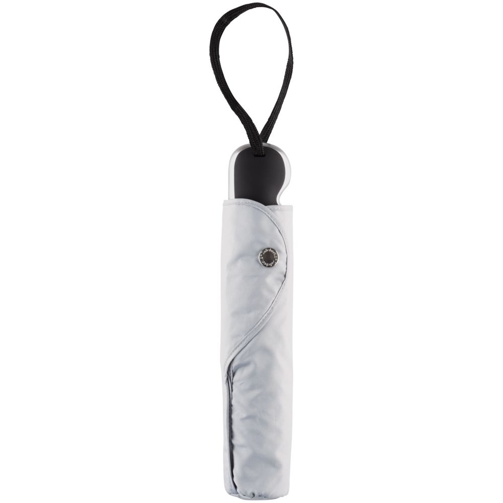 Изысканный компактный зонт с декоративными элементами из светоотражающего материала 3M Scotchlite в углах клиньев и эргономичной ручкой.