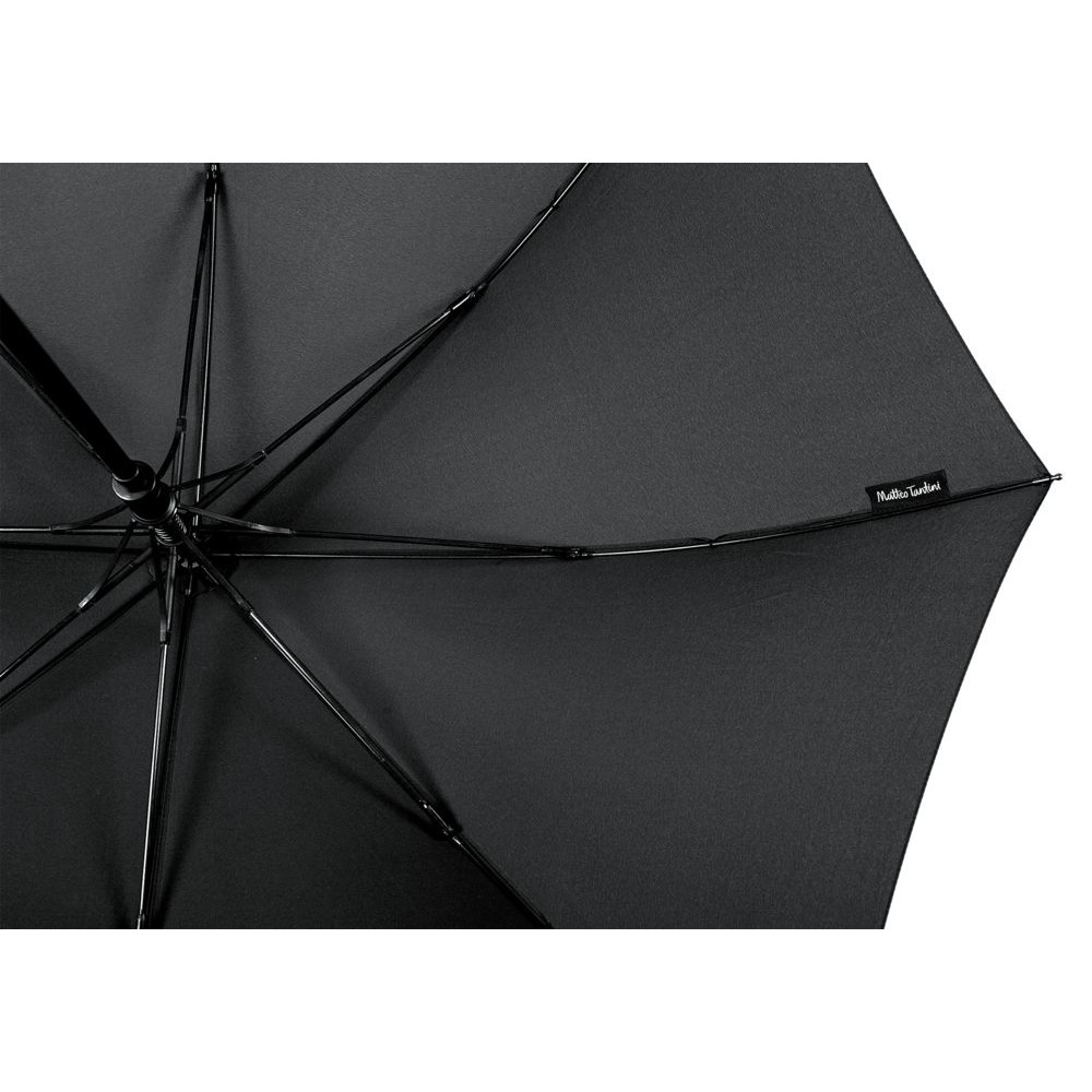 Тефлоновое покрытие ткани отталкивает воду и грязь, обеспечивая долговечность и легкий уход. Усиленная ветрозащитная конструкция выдерживает даже сильные порывы ветра, а автоматическое открывание делает использование максимально удобным. Эргономичная ручка из матового пластика с изящным дизайном и противоскользящим верхом добавляет комфорта. Зонт упакован в стильный чехол из той же ткани — это не только практично, но и элегантно.