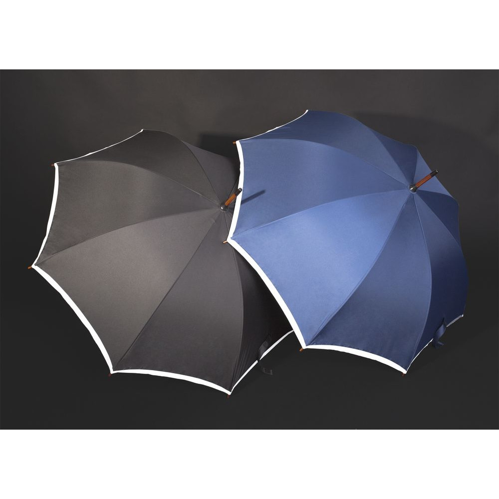 Зонт со светоотражающей полосой обеспечит вас дополнительной защитой в темное время суток, повышая видимость для водителей и пешеходов благодаря ярким отражающим элементам.