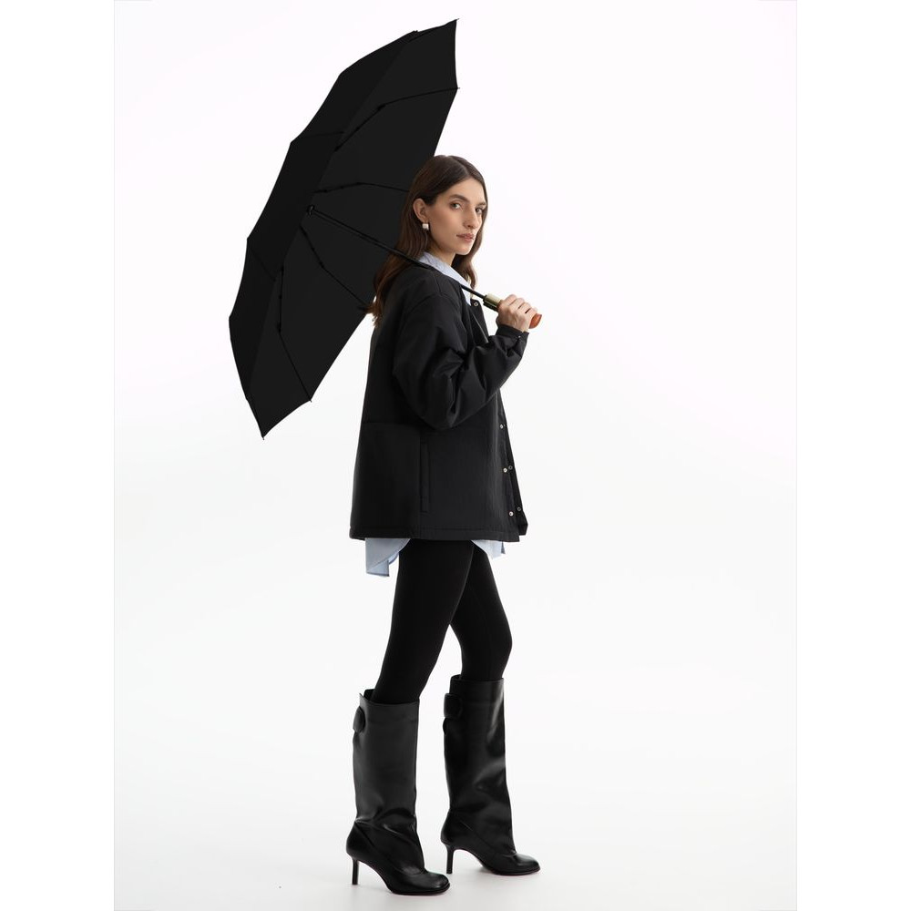Автоматический механизм позволяет раскрыться за секунду. Плотная ткань купола обеспечивает высокую прочность и устойчивость к разрывам, при этом оставаясь легкой. А ручка из натурального дерева обеспечивает комфортный захват и добавляет зонту благородности.
