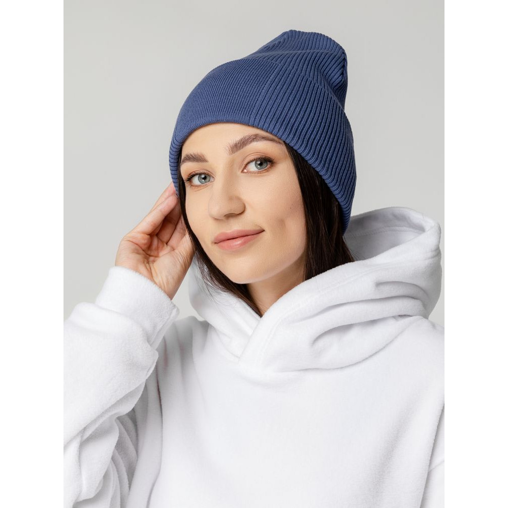Двухслойная шапка фактурной вязки с отворотом и специальной более гладкой областью под вышивку.